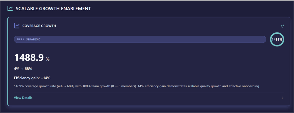If you drill down further into the coverage growth metric, you’ll see a unique chart that tracks both automation coverage growth and efficiency gain over time separately.