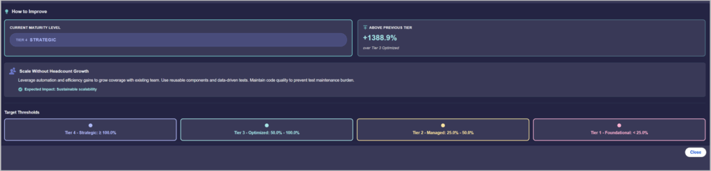 The How to Improve section will show your team’s maturity level for coverage growth, again with actionable steps on how to maintain or improve further.