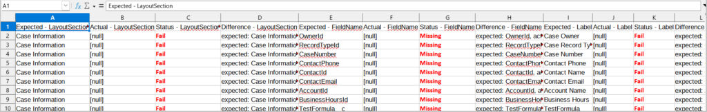 - Pass/Fail status for each comparison row