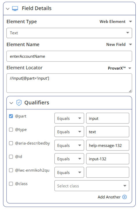 - Qualifiers: The element attributes or properties that can be used to locate the element.