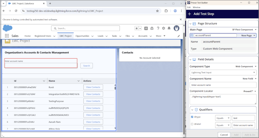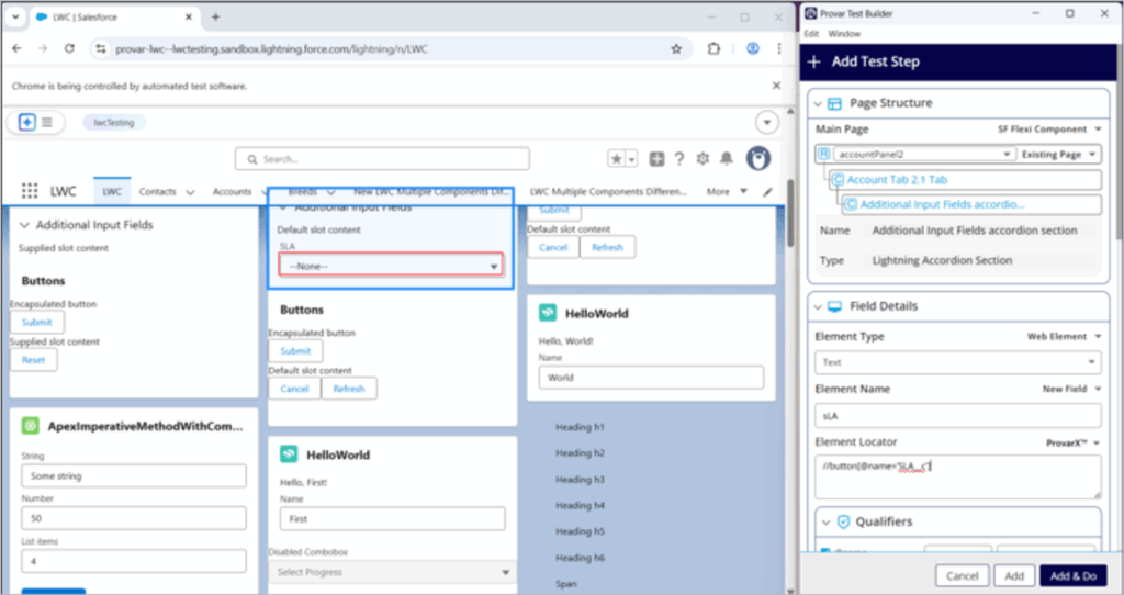 The hierarchical page structure for LWC mappings, enables Provar to automatically switch tabs or open closed accordions during test execution. Earlier, these interactions required users to manually insert multiple test steps.