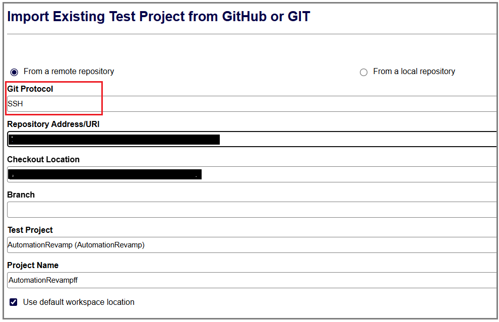 - Automation V3: Import Test Project from a Remote Repository
