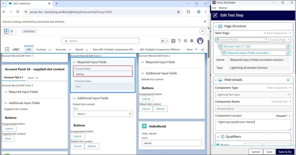 With hierarchical support, those extra steps are no longer required, Provar now handles the navigation of these standard components automatically in a single step. This is particularly useful for applications such as Experience Cloud, which are commonly built using Salesforce LWC components.